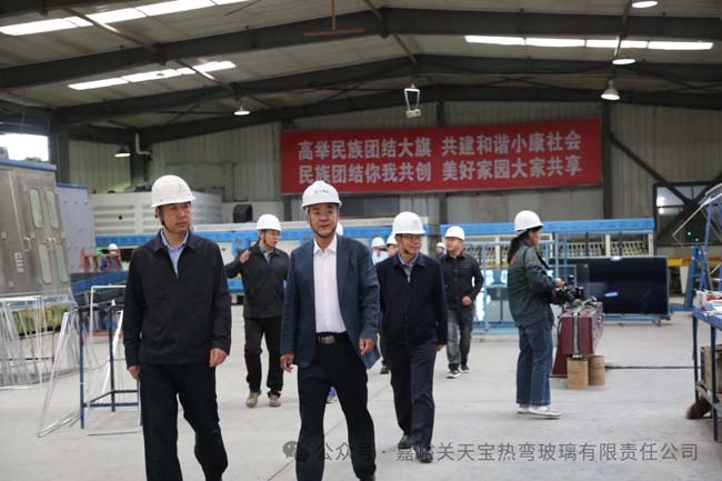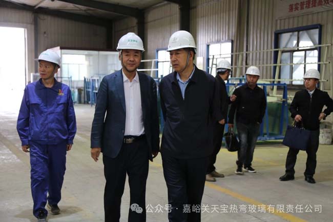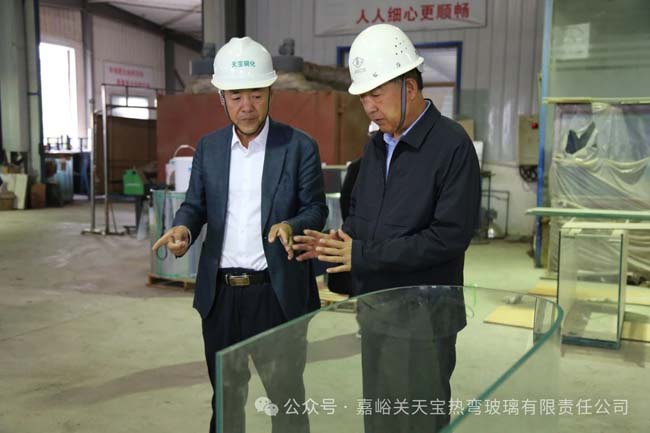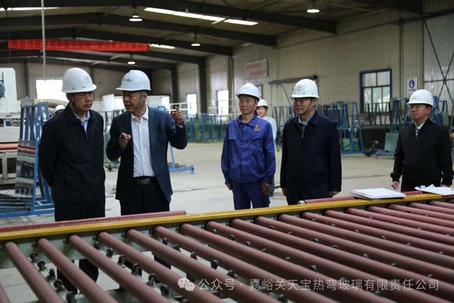 2024年9月14日上午九點,嘉峪關市市委常委、常務副市長石福勝及市工信局、工業園區管委會領導等一行蒞臨嘉峪關市天寶熱彎玻璃工藝有限責任公司調研指導,企業負責人鄭普旺陪同。