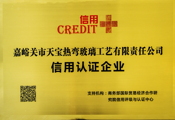 2018年5月,由省科技廳、商務廳推薦,中央電視臺(信用中國欄目組)與國家商務部共同全國百家企業甄選誠信企業天寶玻璃被甄選。同年6月1日,CCTV信用中國欄目組來我企業實地拍攝復審,7月25日在中央電視臺演播大廳接受了中央電視臺節目主持人張露馨老師的個人專訪。9月初收到了商務部和中央電視臺企業認證銅牌以及證書。
